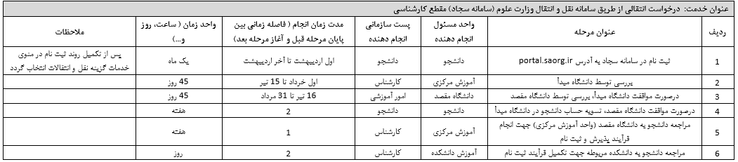 درخواست انتقالی از طریق سامانه نقل و انتقال وزارت علوم (سامانه سجاد) مقطع کارشناسی