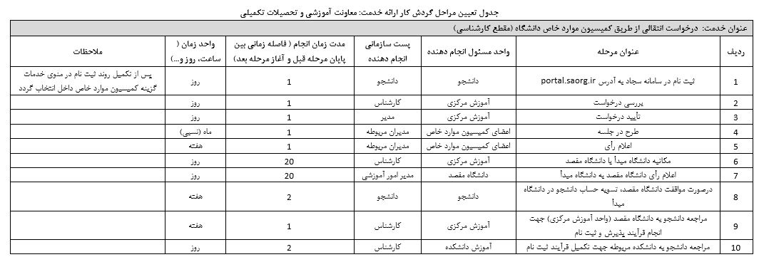 درخواست انتقالی از طریق کمیسیون موارد خاص دانشگاه(مقطع کارشناسی)