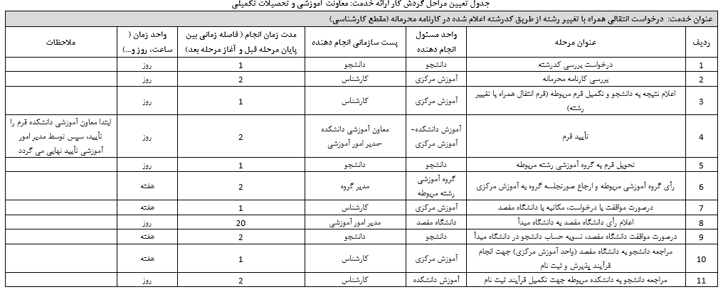 درخواست انتقالی همراه با تغییر رشته از طریق کد رشته اعلام شده شده در کارنامه محرمانه