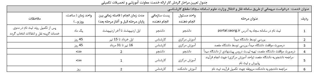 درخواست میهمانی از طریق سامانه نقل و انتقال وزارت علوم(سامانه سجاد) مقطع کارشناسی
