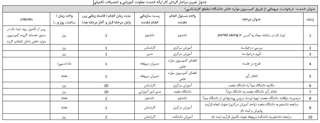 درخواست مهمانی از طریق کمیسیون موارد خاص دانشگاه( مقطع کارشناسی)