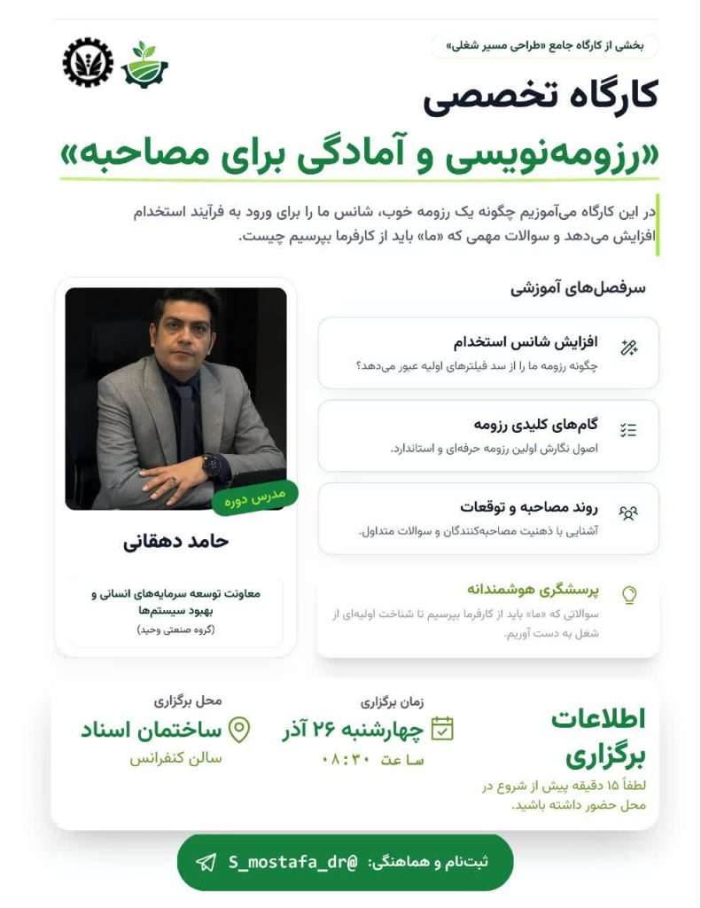 کارگاه تخصصی «رزومهنویسی و آمادگی برای مصاحبه»