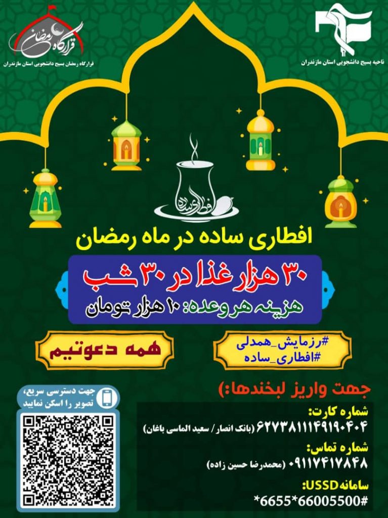 به گزارش روابط عمومی، دکتر تیموری رئیس دانشگاه و حجه الاسلام والمسلمین سید غلامحسن خاکزاد شاهاندشتی مسئول نهاد رهبری دانشگاه از نحوه اجرای “رزمایش همدلی افطاری ساده” در ماه مبارک رمضان که با همکاری ناحیه بسیج دانشجویی و قرارگاه رمضان بسیج دانشجویی استان مازندران در حال انجام می باشد بازدید کردند.