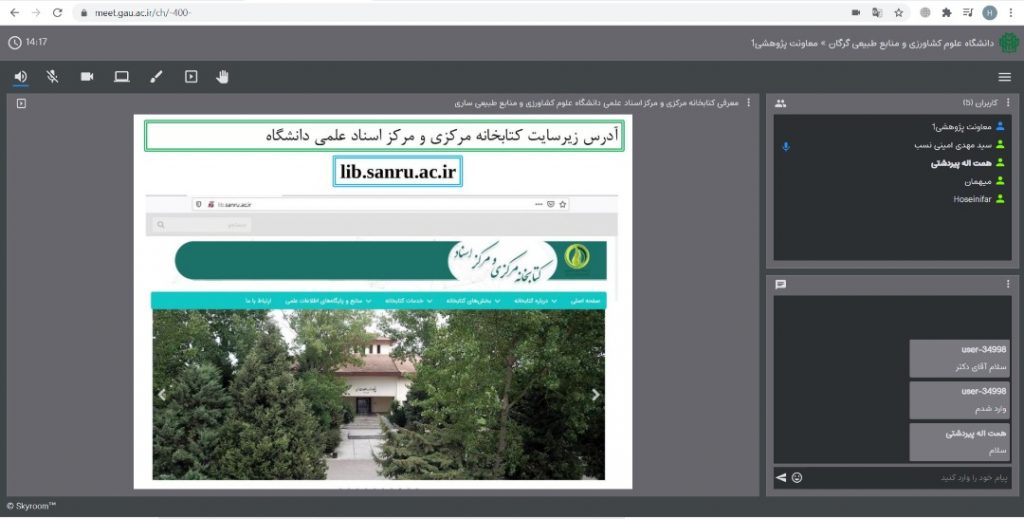 به گزارش روابط عمومی دانشگاه و به نقل از حوزه معاونت پژوهش و فن آوری دانشگاه، جلسه مشترک کتابخانه های مرکزی و مرکز اسناد دانشگاه علوم کشاورزی و منابع طبیعی ساری با دانشگاه علوم کشاورزی و منابع طبیعی گرگان به صورت مجازی با حضور معاونین پژوهشی و فن آوری دو دانشگاه آقای دکتر همت اله پیردشتی و دکتر حمید رضا رضایی و همچنین روسای کتابخانه مرکزی و مرکز اسناد دو دانشگاه دکتر سید مهدی امینی نسب و دکتر سید حسین حسینی فر و کارشناسان مسئول کتابخانه های دو دانشگاه برگزار شد.