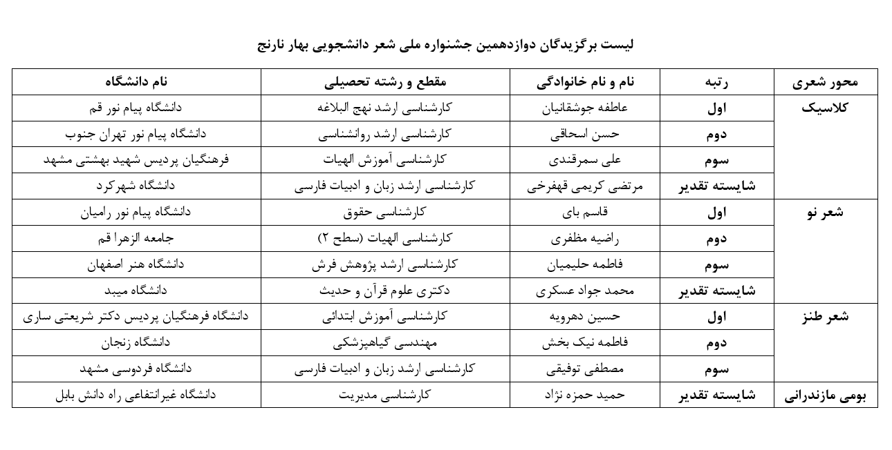 به میزبانی دانشگاه علوم کشاورزی و منابع طبیعی ساری برگزار شد: دوازدهمین دوره جشنواره ملی شعر دانشجویی بهار نارنج
