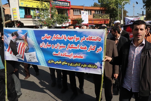 حضور دانشگاهیان دانشگاه علوم کشاورزی و منابع طبیعی ساری در مراسم ۱۳ آبان
