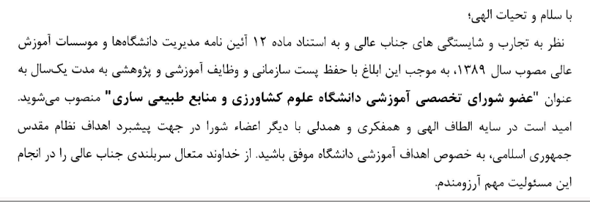گفتنی است متن ابلاغ ایشان در تصویر ذیل قابل مشاهده می باشد؛