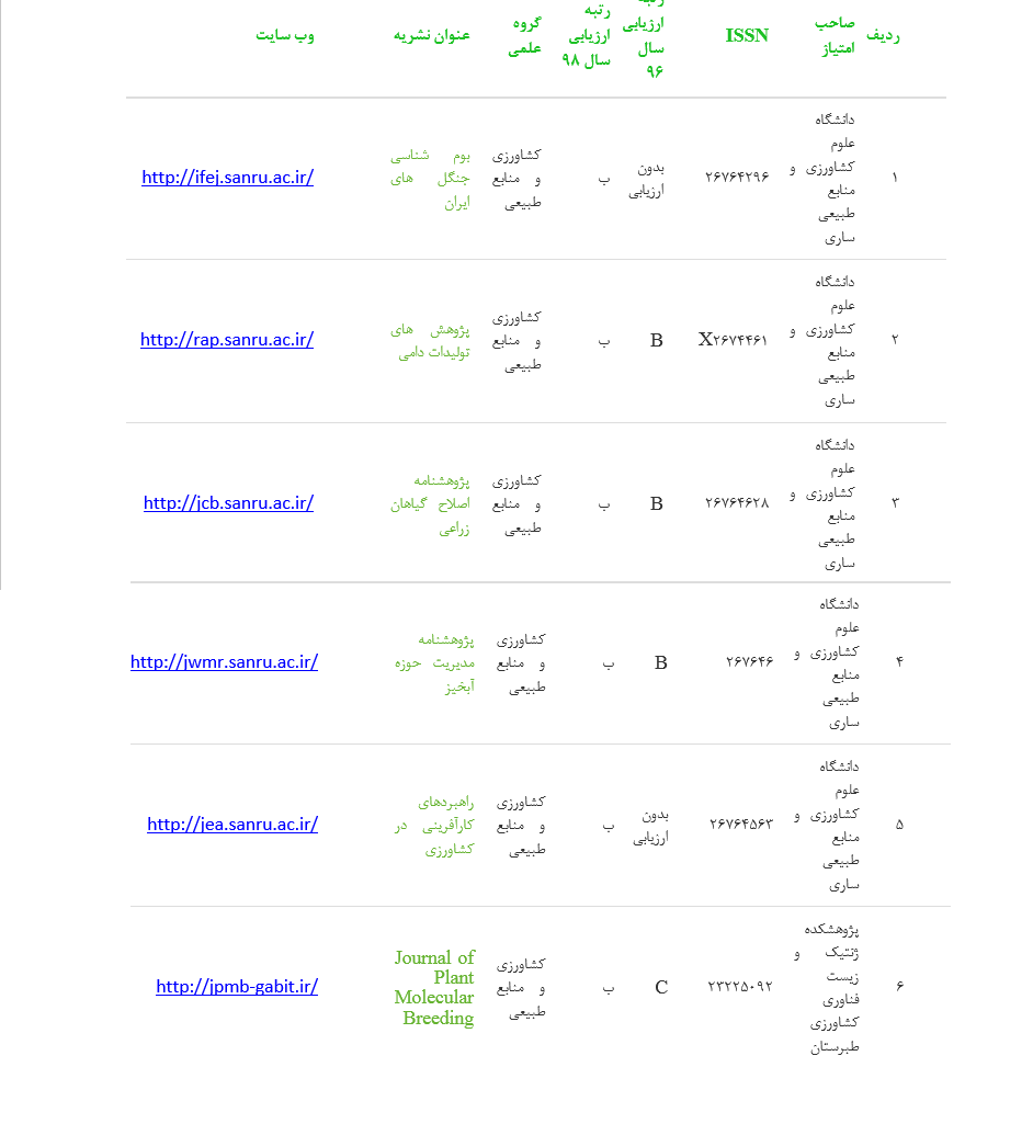 رتبه ارزیابی سال ۱۳۹۸ نشریات دانشگاه علوم کشاورزی و منابع طبیعی ساری اعلام شد