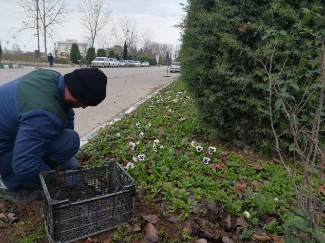 عملیات کاشت نشای انواع گل های فصلی در سطح دانشگاه