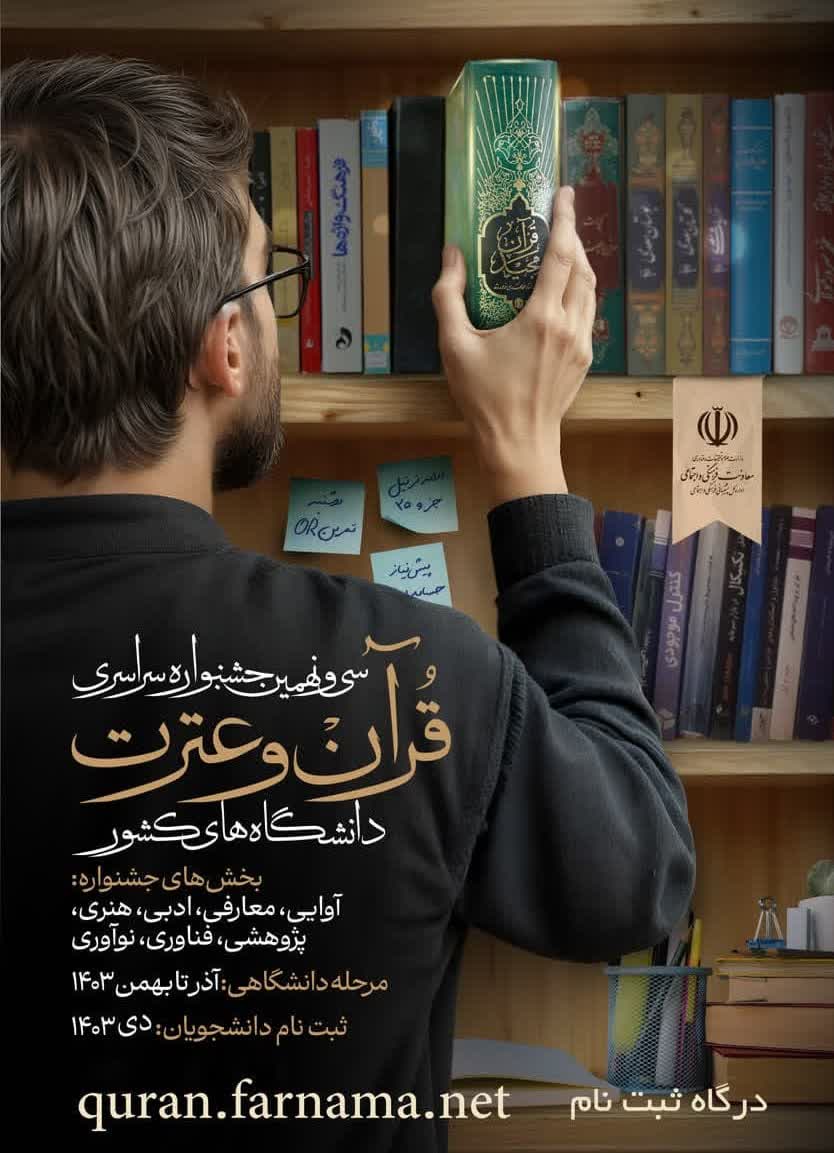 ۱۴۰۳-۱۰-۱۵|دیدگاهها برای فراخوان سی و نهمین جشنواره سراسری قرآن و عترت دانشجویان سراسر کشور بسته هستند|Uncategorized, اطلاعیهها