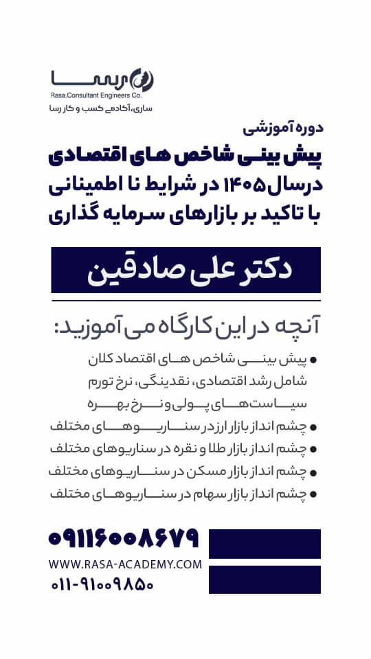 فراخوان شرکت در کارگاه تخصصی با موضوع: «پیش بینی شاخصهای اقتصادی در سال ۱۴۰۵ در شرایط نا اطمینانی با تاکید بر بازارهای سرمایهگذاری»