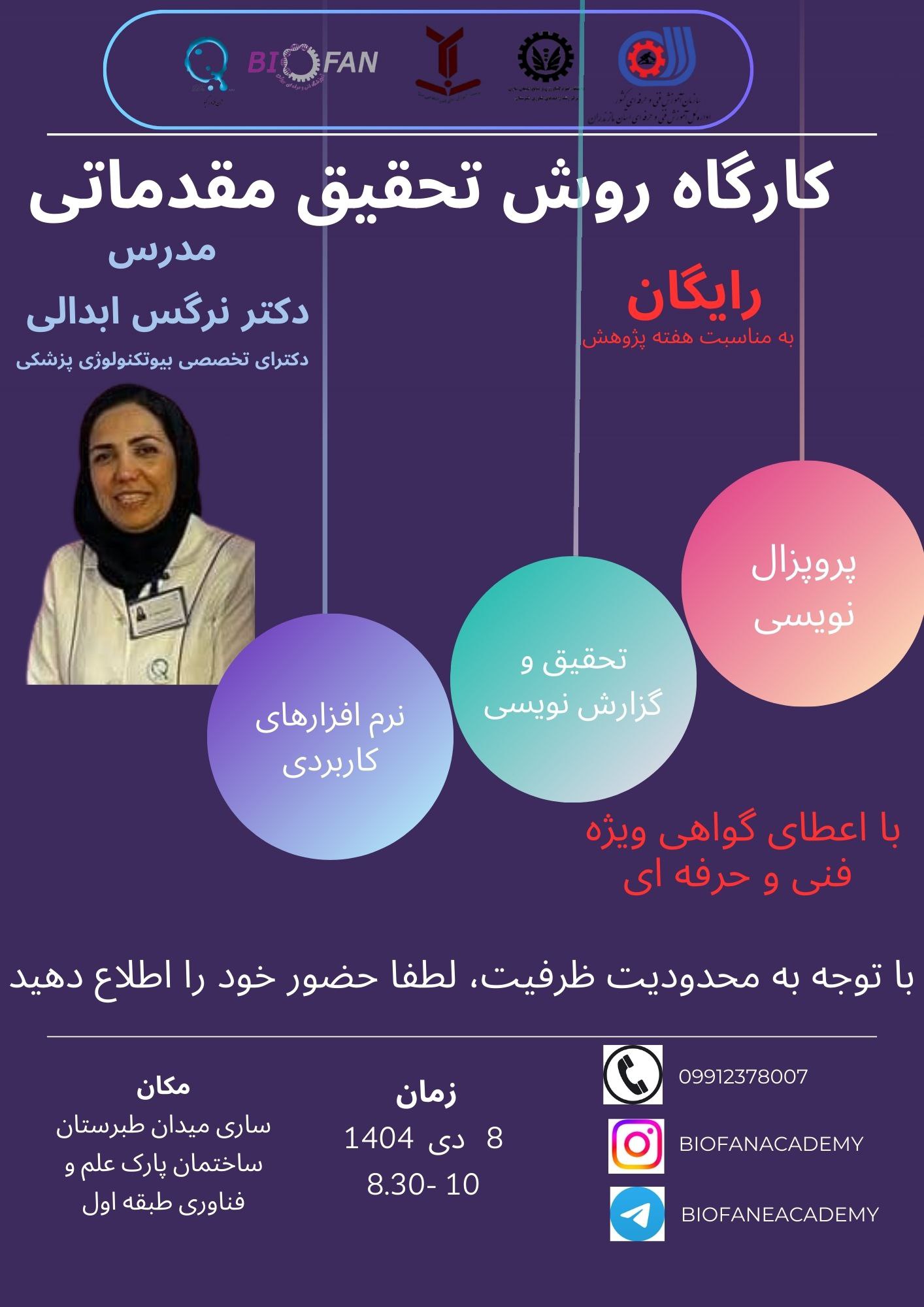 👩🏫 مدرس: سرکار خانم دکتر نرگس ابدالی– دکترای تخصصی بیوتکنولوژی پزشکی