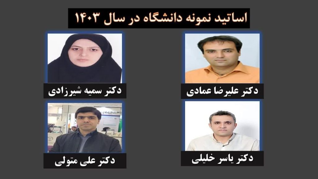 در پایان این مراسم از دکتر شیرزادی، دکتر مجاوریان، دکتر بابایی زاد، دکتر عمادی، دکتر متولی، دکتر خلیلی، دکتر امیر نژاد و دکتر تیموری بعنوان اساتید نمونه و دکتر جلیلی، دکتر کریمی، دکتر قاسمی، دکتر محمدی شریف، دکتر رستگار و همچنین دکتر دماوندیان بعنوان اساتید ارتقاء یافته و دکتر تقوی و دکتر مهدیان بعنوان اساتید بازنشسته تقدیر گردید.