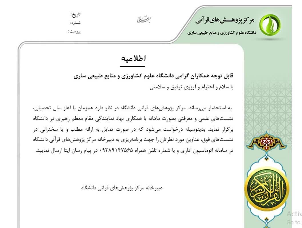 فراخوان مرکز پژوهش های قرآنی دانشگاه