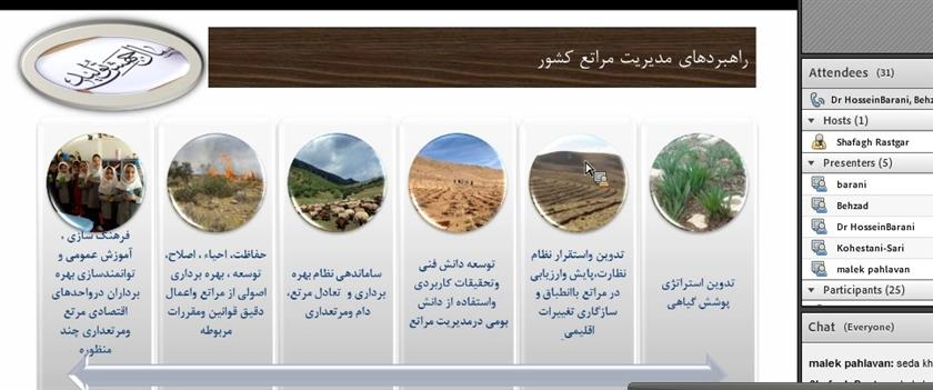 در اين نشست، مهندس بهزاد رئيس دفتر فني امور مراتع سازمان جنگلها، مراتع و آبخيزداري ضمن تشكر از برگزاركنندگان وبينار به شرح وظايف دفتر امور مراتع پرداخت.