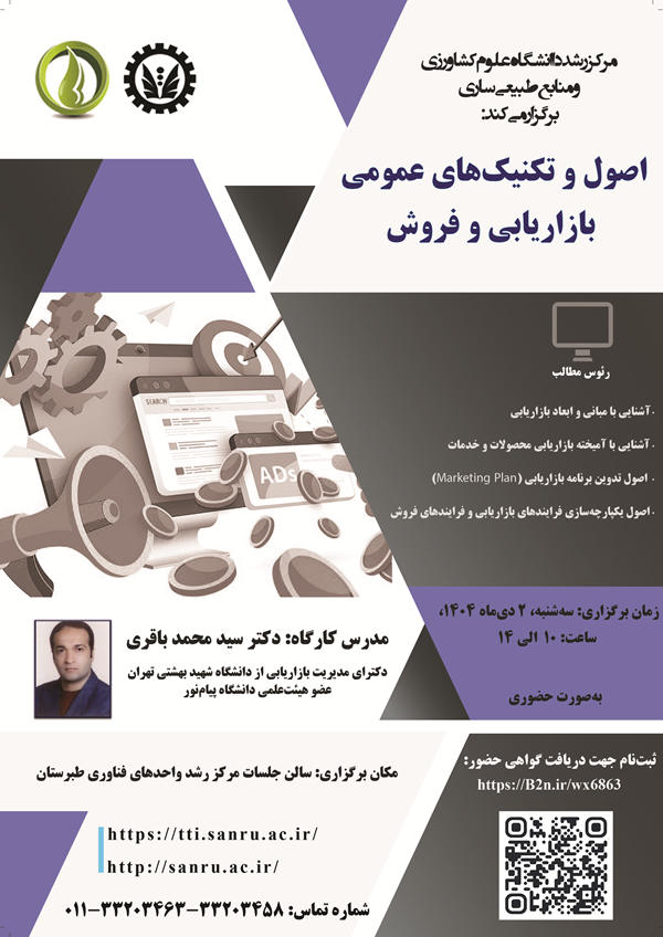 📣📣 فراخوان شرکت در کارگاه تخصصی «اصول و تکنیکهای عمومی بازاریابی و فروش»