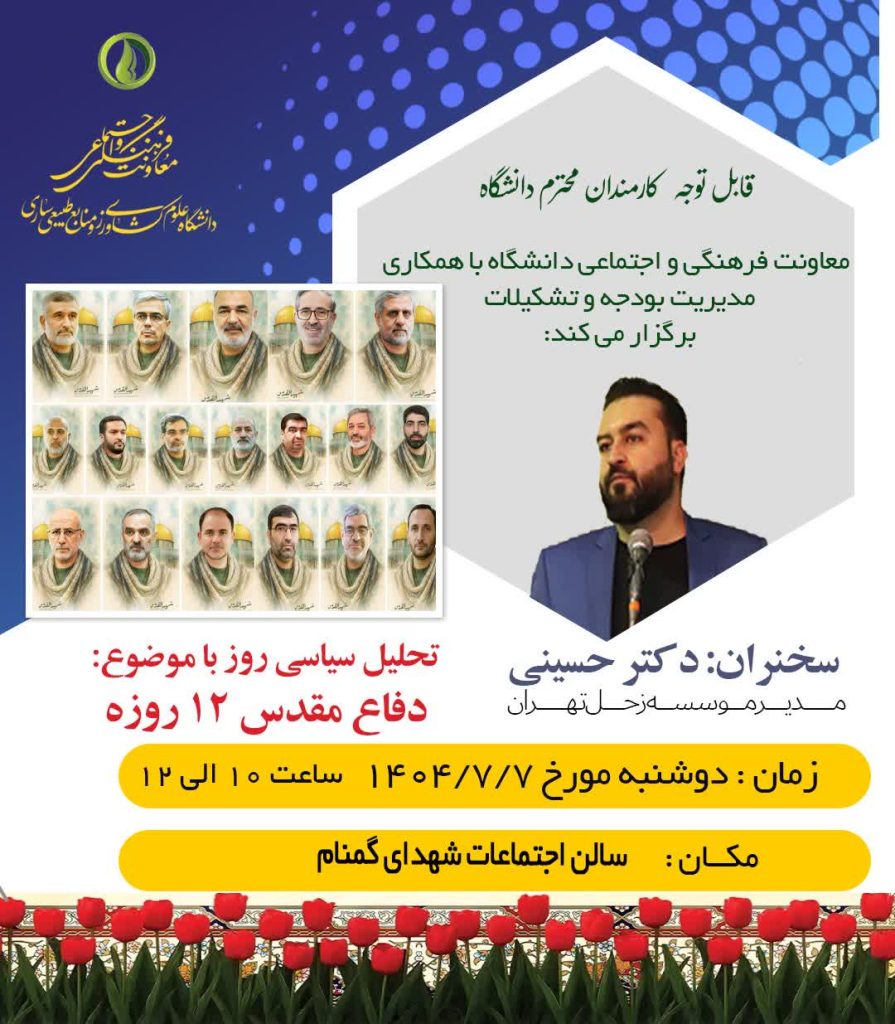 سخنرانی با موضوع دفاع مقدس 12 روزه برگزار خواهد شد