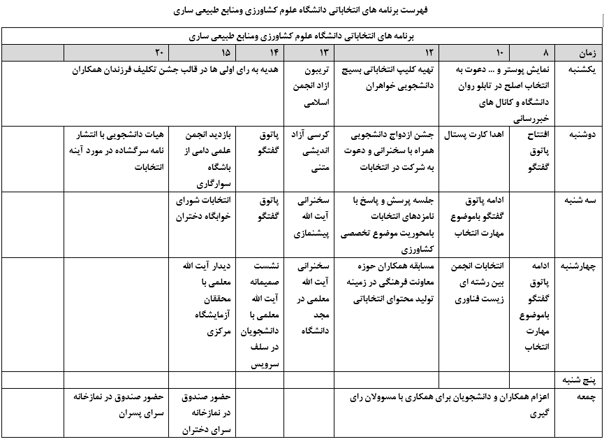 فهرست برنامه های انتخاباتی معاونت فرهنگی و اجتماعی دانشگاه