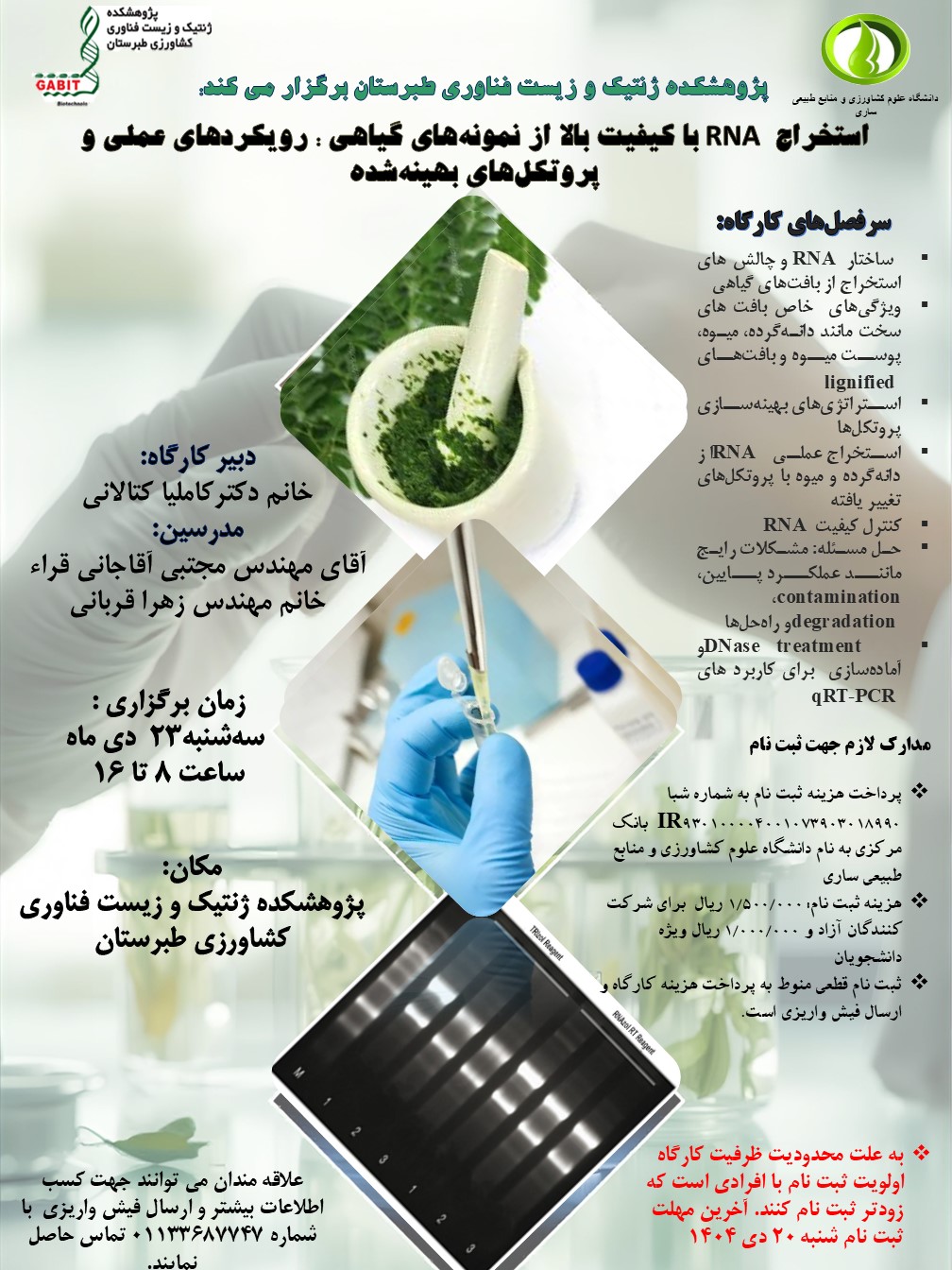 کارگاه “استخراج RNA با کیفیت بالا از نمونههای گیاهی”رویکردهای عملی و پروتکلهای بهینهشده” در دانشگاه برگزار می گردد