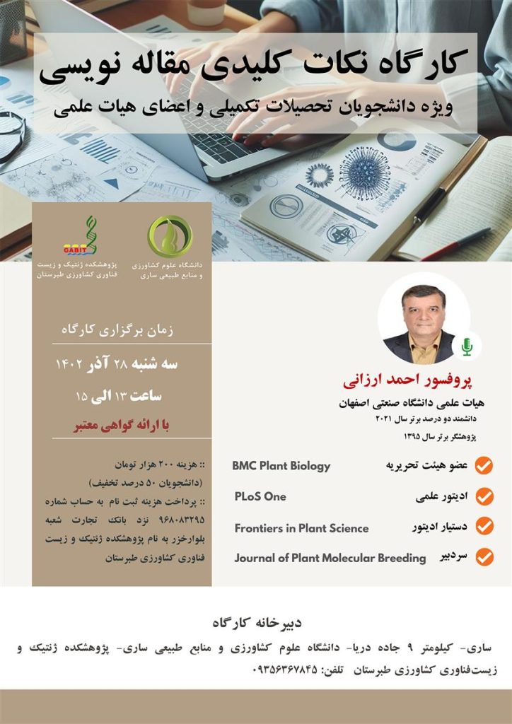 کارگاه نکات کلیدی مقاله نویسی ویژه دانشجویان تحصیلات تکمیلی و اعضای هیات علمی برگزار می گردد