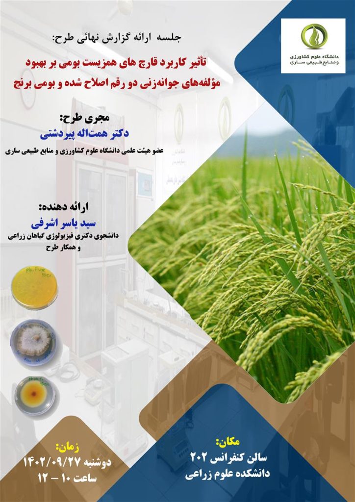 جلسه ارائه گزارش نهایی طرح تاثیر قارچ های همزیست بومی بر بهبود مولفه های جوانه زنی دو رقم اصلاح شده و بومی برنج برگزار می گردد