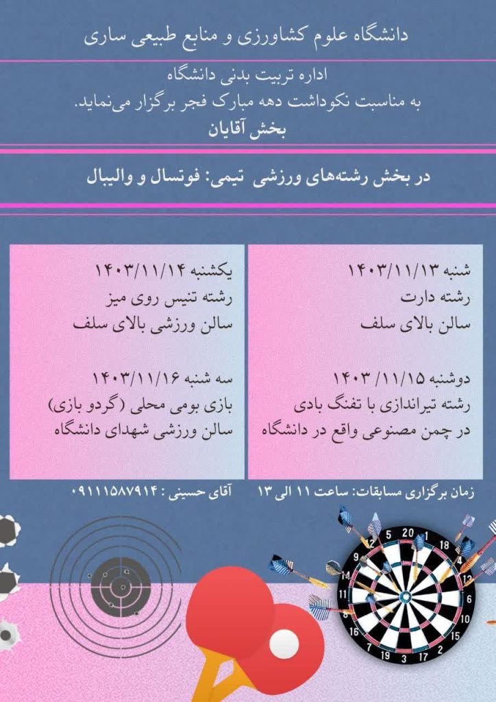 اداره تربیت بدنی دانشگاه به مناسبت نکو داشت دهه مبارک فجر برگزار میکند: مسابقات ورزشی