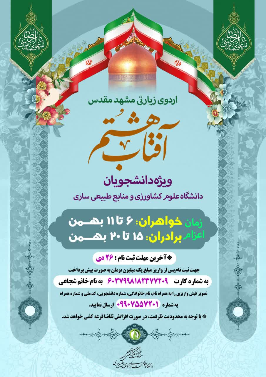 ثبت نام اردوی زیارتی مشهد مقدس (آفتاب هشتم) ویژه دانشجویان