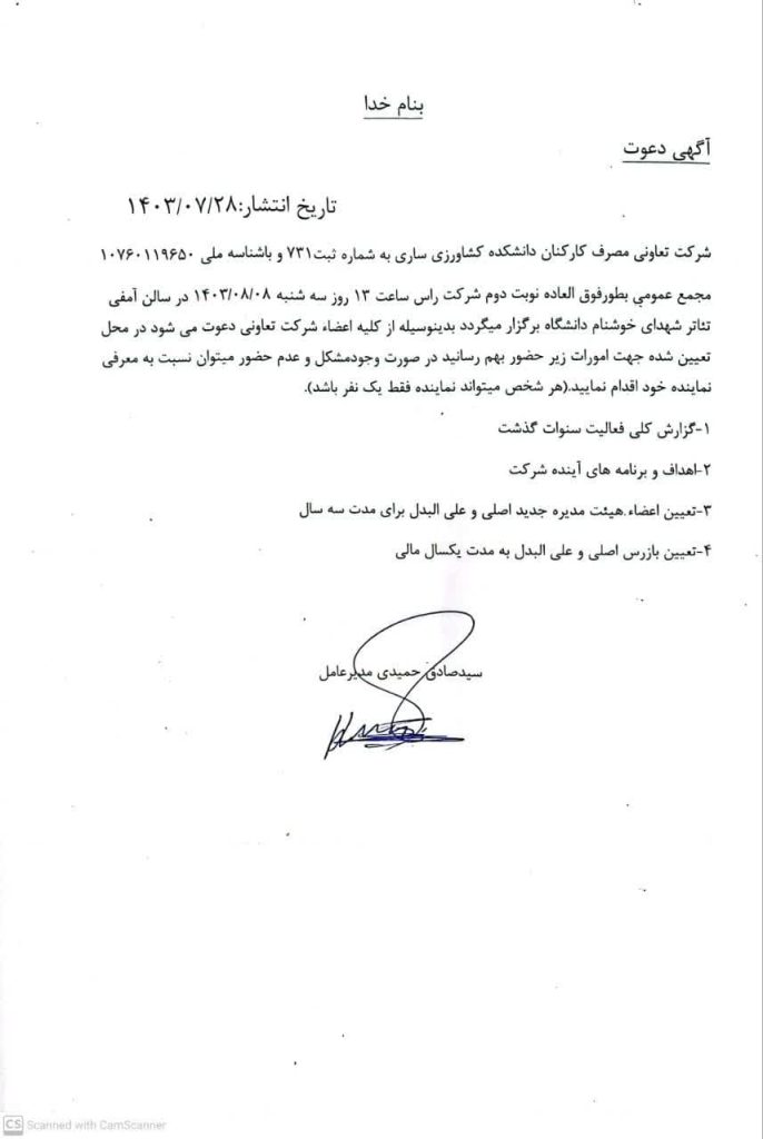 آگهي دعوت مجمع عمومی بطور فوق العاده نوبت دوم شرکت تعاوني مصرف كاركنان دانشگاه
