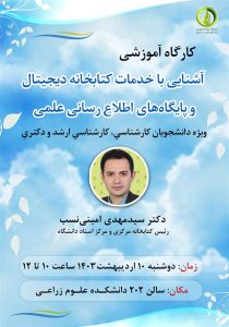 كارگاه آموزشي با عنوان : ” آشنايي با خدمات كتابخانه ديجيتال و پايگاه هاي اطلاع رساني علمي”