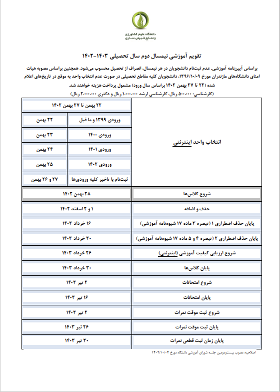 برای ورود به دوره کارشناسی ارشد سال تحصیلی 1404-1403 دانشگاه علوم کشاورزی و منابع طبیعی ساری به استناد آئیننامه شماره 307862/2 مورخ 17/10/1401 وزارت علوم، تحقیقات و فناوری برای سال تحصیلی 1404- 1403 از بین دانشجویان ورودی سال 1399 که جزء 20 درصد برتر دانشجویان همورودی و همرشته خود میباشند، مازاد بر ظرفیت دوره روزانه…
